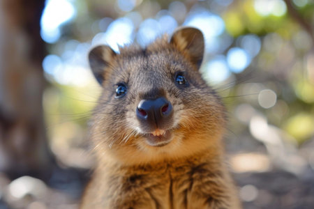 High-quality image capturing the friendly face of a wild quokka with a natural blurred background