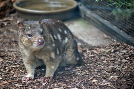 A closeup shot of a Tiger Quoll, Spotted-tail Quoll in Tasmania, Australia