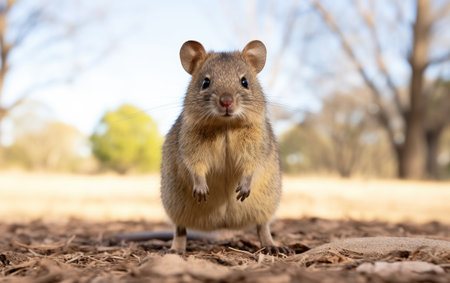 A cute, curious bandicoot stares at the camera with a beautiful coastal backdrop The photo captures the animal's unique features and the natural beauty of its habitat Perfect for wildlife, nature, and travel publications AI Generative