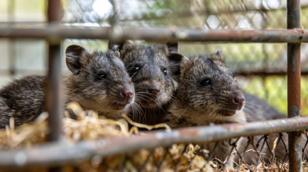 Detailed view of a large indoor enclosure housing a family of playful racs providing a safe and comfortable environment for their recovery