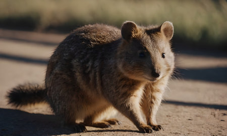 Charming quokka with a friendly smile captured against a soft, bokeh background in the wild