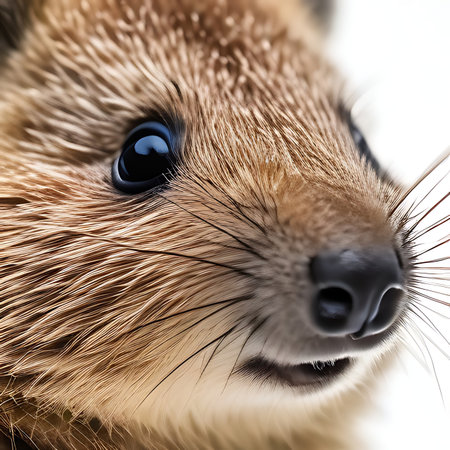 close-up of the face of a hedgehog on a white background