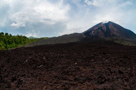 Cold lava residual in front of not active volcano near Antigua Guatemala