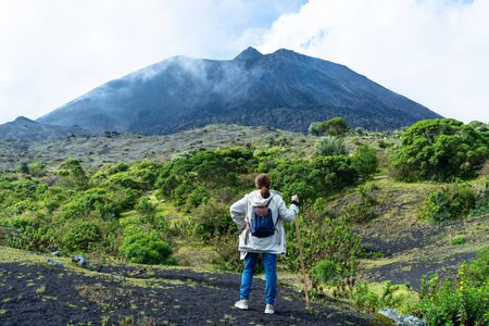A young woman heads to the upper part of the Pacaya volcano in Guatemala.