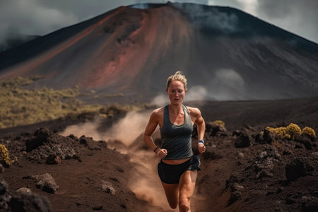 The girl is engaged in mountain running, athletics in the mountains, generative AI.