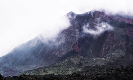 Volcano Mount Etna in Sicily, Italy. Beautiful view of Mount Etna volcano. Toned.