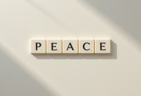 This minimalist image features the word PEACE crafted from letter tiles, emphasizing tranquility and serenity against a soft background. Perfect for inspiration.
