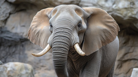 elephant, wrinkled skin, tusks and its trunk generative ai