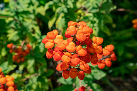 The Weeping Lantana orange flower blossom in the San Francisco Botanical Garden, California