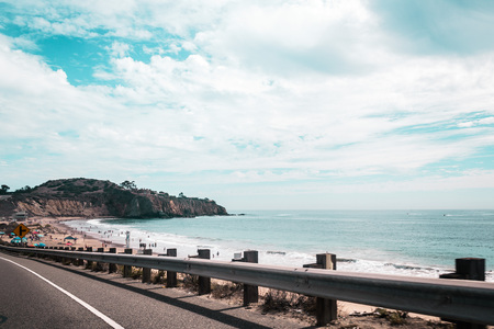 clean highway go aside the bay of ocean, california,