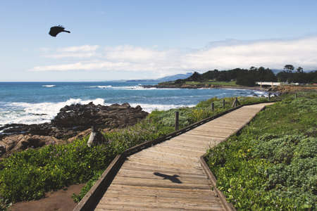 Boardwalk along the Pacific Ocean in Cambria, California.