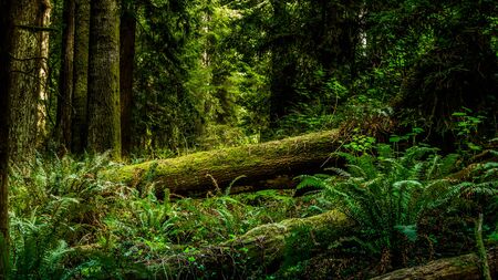 Beautiful green forest during a sunny summer evening. Taken in Squamish, North of Vancouver, British Columbia, Canada.