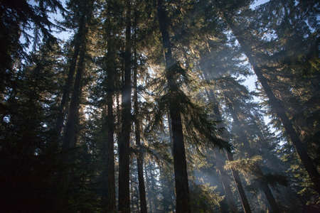 Sunrays filtering thru the forest foliage in a Vancouver park, British Columbia, Canada.
