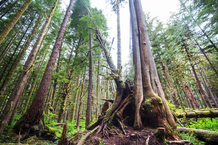 Mystery Forest Symbiosis. American Northwest Rainforest Two Trees Symbiosis.