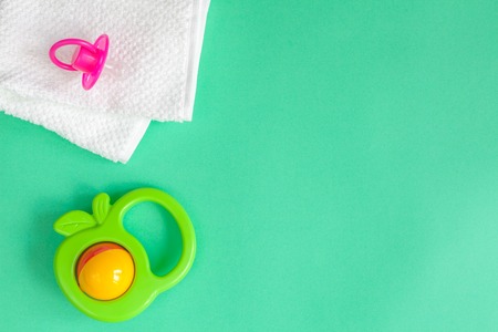 baby accessories for newborns on a colored background. selective focus. nature.