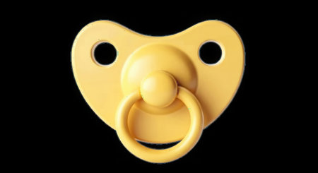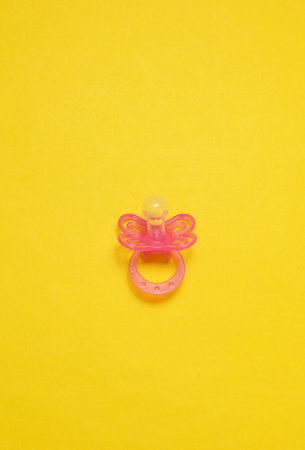 Baby pacifier over a plain yellow background