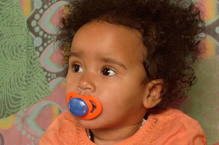 Baby orange pacifier close up