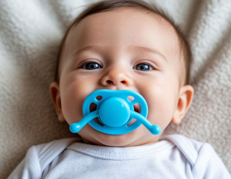 Baby blue pacifier close up
