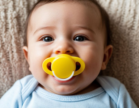 Close-up of a pacifier in a baby's mouth.