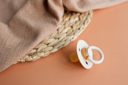 Baby pacifier close-up on a beige background.