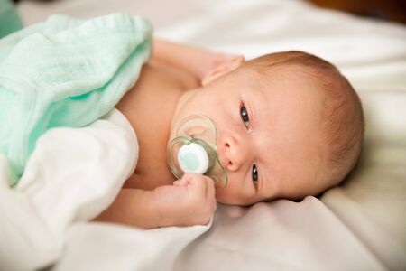 Newborn baby sleeping with pacifier