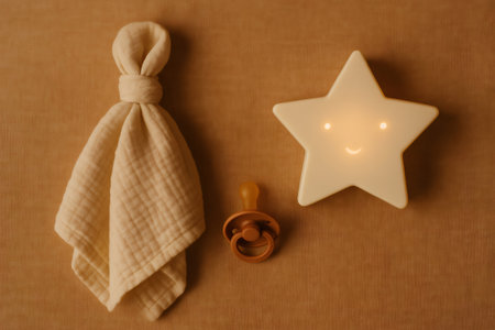 Baby pacifier, muslin cloth, and star night light creating a soothing atmosphere for a child's bedroom