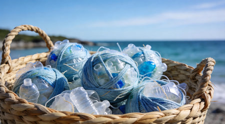 Serene digital artwork conveying eco-innovation and mindful consumption via subtle translucency and gentle daylight glow for an uplifting sustainable vibe. Precision-crafted with layered textures and balanced color harmony, suited for high-impact uses in green packaging, zero-waste infographics, upcycling tutorials, fashion sustainability pitches, and corporate eco-r... AI-generated illustration.