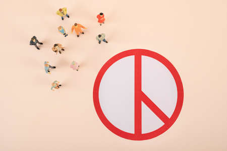 International Day of Peace concept. Group of people with peace signs. Vector illustration.