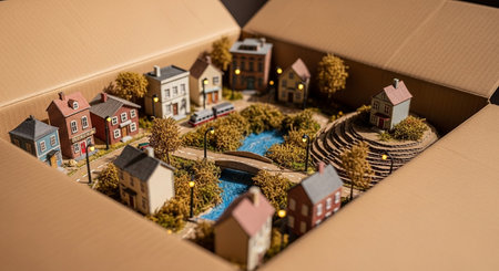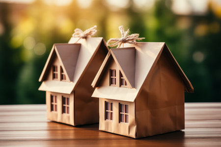 Cardboard houses in a row concept for community, neighborhood or real estate market
