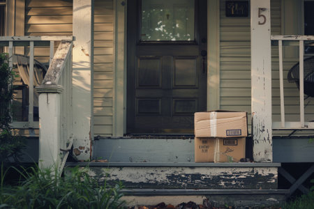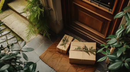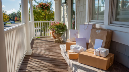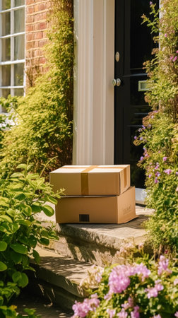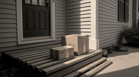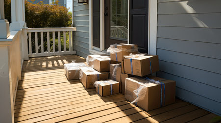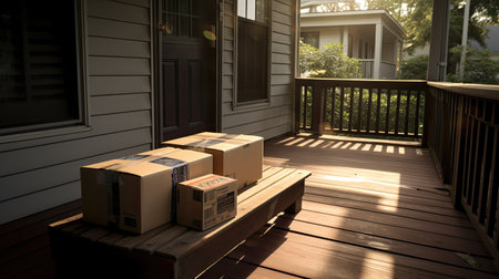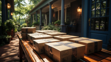 Delivered to your doorstep: Boxes and parcels arranged neatly near the entrance, illustrating the convenience and reliability of home delivery services