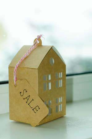 Studio Shot Of House Wrapped In Brown Paper With Sale Sticker