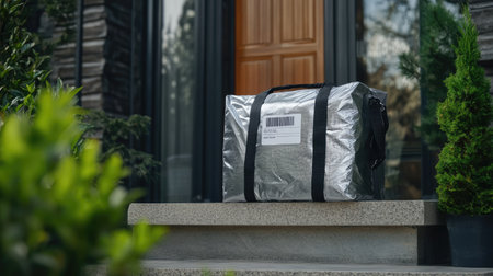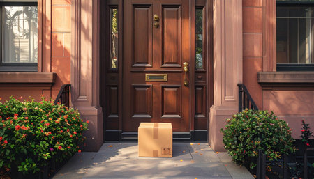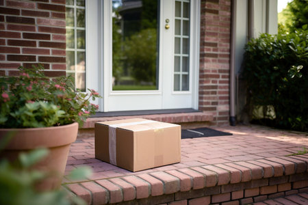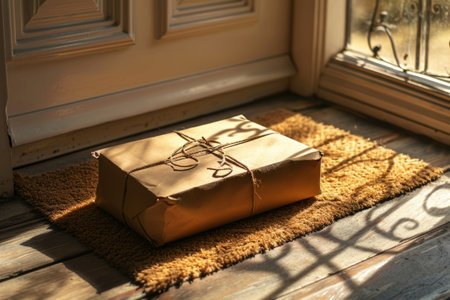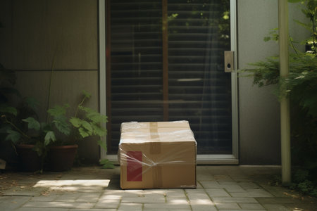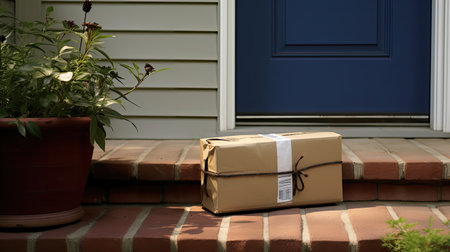 A Close-Up Look at a Parcel Waiting Patiently Near a House's Front Door