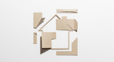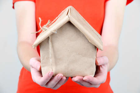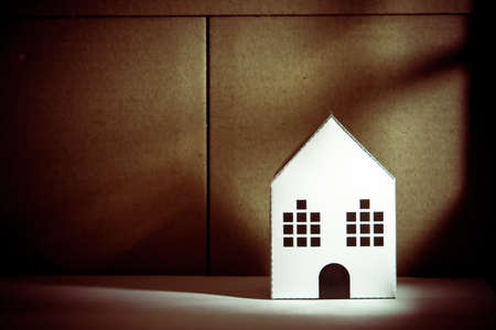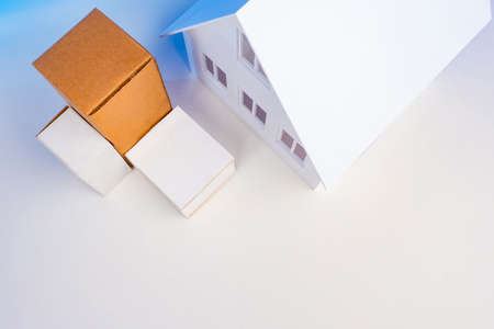 A model of a house made of white cardboard. Such a small paper house can mean property, a mortgage or just a paper toy or other real estate meanings