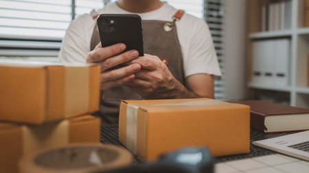 Business owner working. Online shopping SME entrepreneur. Buy and sell online