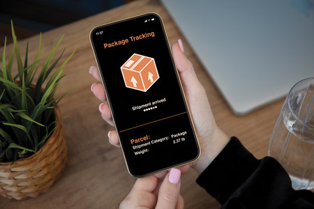 Person using a mobile app to track their parcel shipment, demonstrating order tracking and real-time location monitoring features for efficient delivery management.
