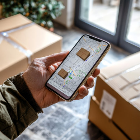 Close-up of a smartphone displaying a delivery tracking app interface, highlighting precise order monitoring features for seamless package tracking and delivery updates.