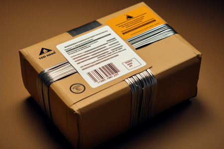 Close-up of tax label on imported packages, symbolizing government-imposed tariffs on global goods