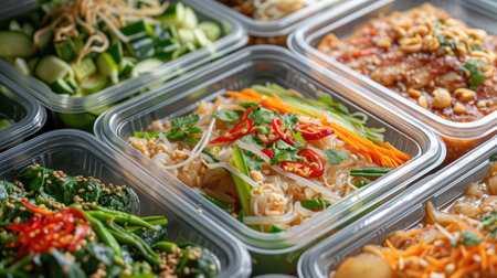 modern Thai food lunch boxes in plastic packages, a taste of Thailand, Ai Generated.