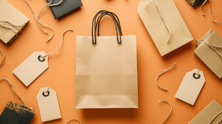 Brown craft paper bag for gift and paper tag.