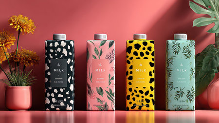 different white boxes with shopping bag pink green background