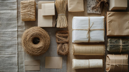 A beautifully wrapped brown paper package resting on a soft surface, showcasing minimalist design while emphasizing simplicity and elegance in shipping.