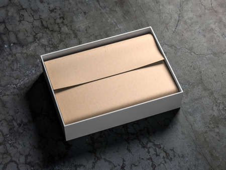 Paper package at paper torn background texture. Recycling concept