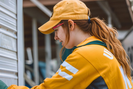 Coach in black cap and jacket standing with his team in yellow uniforms, embodying leadership and focus during team meeting on sunny day.