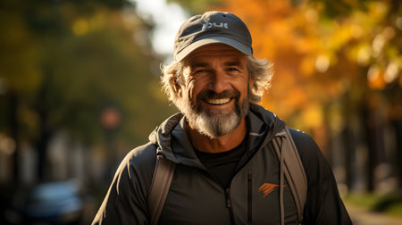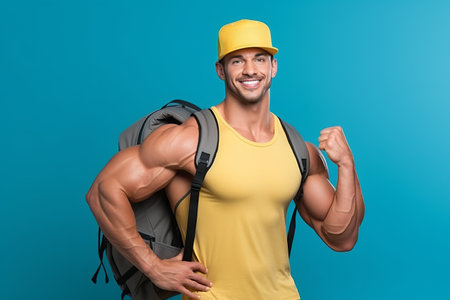 Confident man, backpack, night, city, transportation, working, smiling, casual clothing generated by artificial intelligence