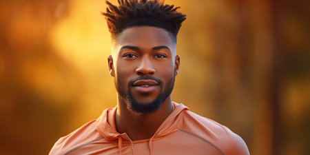 portrait of handsome African American man who doing sport outdoor. healthy lifestyle