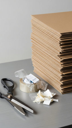 Cardboard box and packing supplies