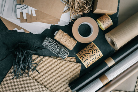 Craft set for packaging gifts and goods, top view.