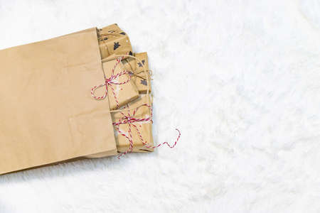 Presents in rustic style for Christmas seasonal holiday