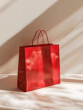 The guy takes the product out of a craft brown eco-bag. Red background. Package without logos.