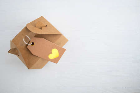 Cute gift box wrapped with craft paper top view. Gift for any holiday.
